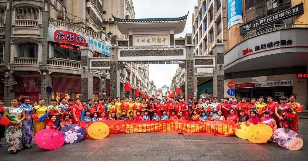 為慶祝新中國成立70周年,配合全球(中國)旗袍總會發(fā)起的“百城千街萬人旗袍秀”暨“創(chuàng)吉尼斯世界紀錄活動”,向全世界展示中華傳統(tǒng)文化和東方女性之美,梧州市旗袍協(xié)會、梧州市華服文化促進會、梧州市老年開放大學藝術(shù)團在梧州市婦聯(lián)的指導下,在廣西百裕集團的冠名支持下,于10月7日上午9時走進騎樓城,開展“百城千街萬人旗袍秀”暨“創(chuàng)吉尼斯世界紀錄”梧州站展演活動。