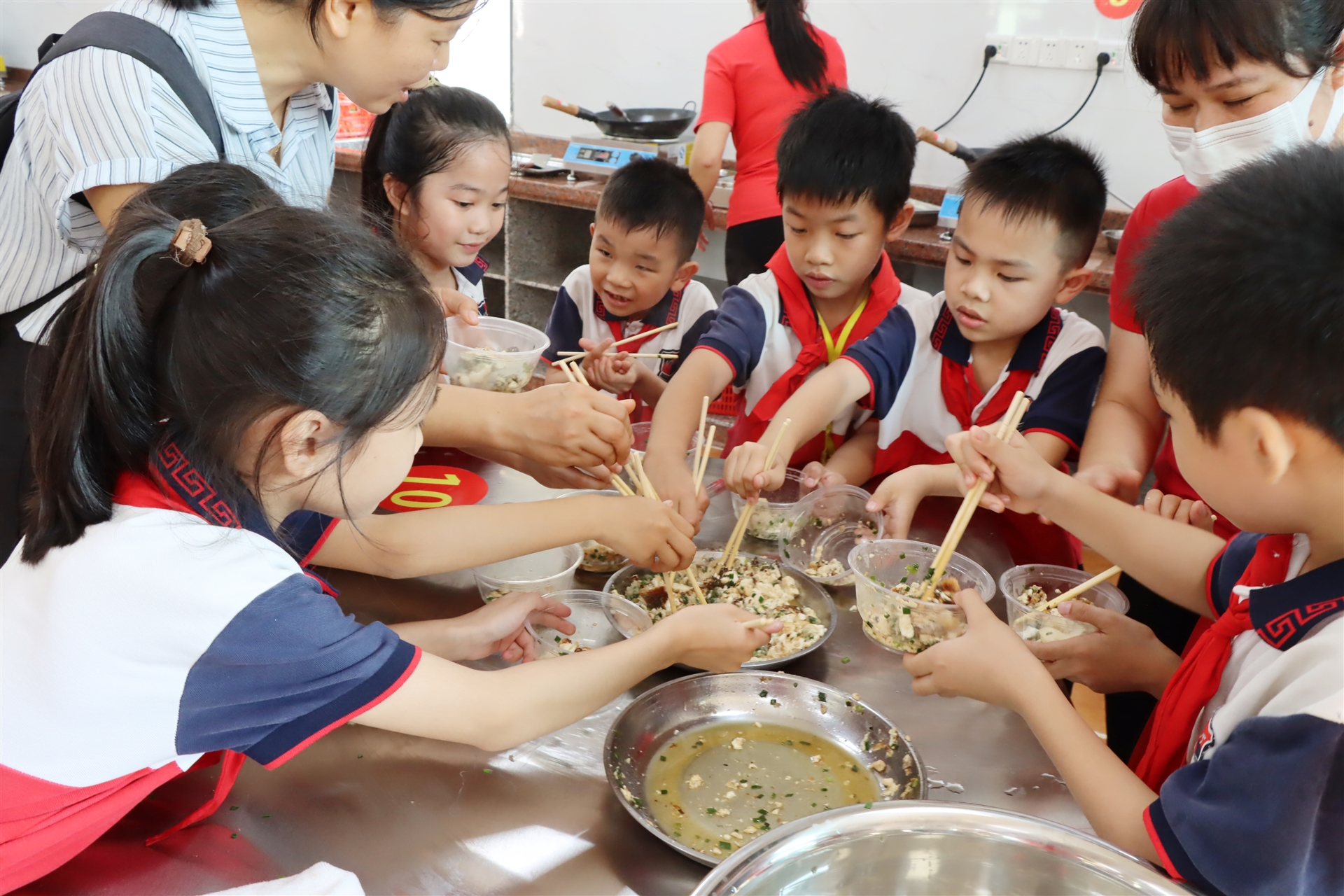 基地師資力量雄厚,研學(xué)資源豐富。聘用的研學(xué)指導(dǎo)師和研學(xué)課程教師都是各相關(guān)行業(yè)中的佼佼者和名師,有廣西名廚協(xié)會副主席、有廣西烹飪評委專家?guī)斐蓡T、有畢業(yè)于正規(guī)服裝專業(yè)的服裝制作產(chǎn)教融合名師......基地現(xiàn)有黨建展示中心、服裝展廳、實(shí)訓(xùn)車間、多功能主題教室、教學(xué)培訓(xùn)廚房、室外操場、種植區(qū)等理論學(xué)習(xí)和實(shí)操場館、場地。開設(shè)的課程項(xiàng)目設(shè)施設(shè)備完善,資源豐富。