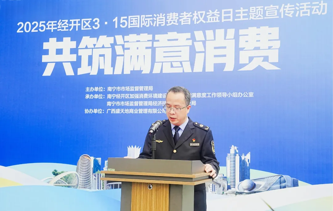 會(huì)議伊始,南寧市市場(chǎng)監(jiān)督管理局經(jīng)濟(jì)技術(shù)開(kāi)發(fā)區(qū)分局負(fù)責(zé)人龍漢傳發(fā)表了重要講話。他強(qiáng)調(diào),消費(fèi)者權(quán)益保護(hù)是市場(chǎng)經(jīng)濟(jì)健康發(fā)展的基石,關(guān)乎每一位市民的切身利益 。各單位、各企業(yè)應(yīng)高度重視消費(fèi)者權(quán)益保護(hù)工作,積極履行社會(huì)責(zé)任,共同為消費(fèi)者創(chuàng)造一個(gè)公平、公正、誠(chéng)信的消費(fèi)環(huán)境。