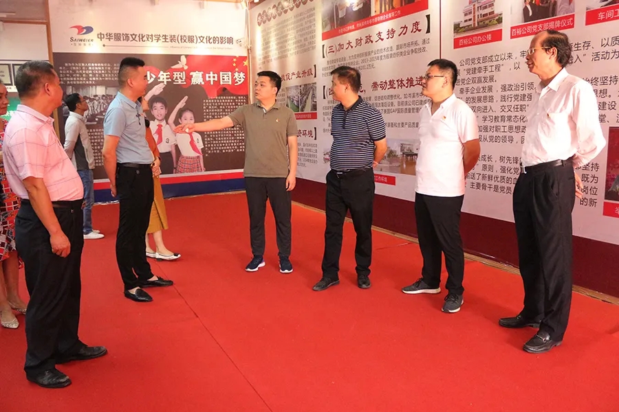 陸鵬處長一行參觀了學(xué)生裝文化展示中心、生產(chǎn)車間和百裕實(shí)業(yè)黨群服務(wù)中心,詳細(xì)了解了公司生產(chǎn)經(jīng)營發(fā)展情況,聽取了近年來加強(qiáng)黨建引領(lǐng)公司發(fā)展工作匯報(bào),并對(duì)進(jìn)一步加強(qiáng)黨員隊(duì)伍建設(shè),建好用好公司黨建陣地,充分發(fā)揮黨員先鋒模范帶頭作用,增強(qiáng)員工凝聚力、戰(zhàn)斗力促進(jìn)公司高質(zhì)量發(fā)展作具體指導(dǎo)。