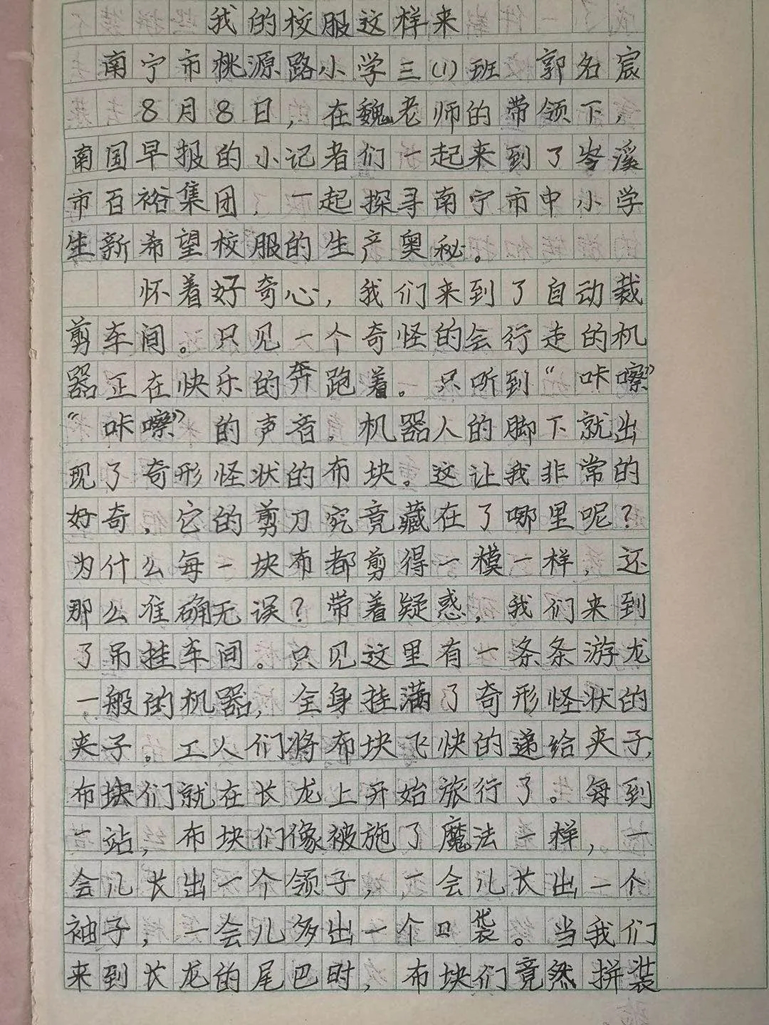 提起“新希望”學(xué)生裝,想必南寧市的中小學(xué)生們是再熟悉不過(guò)的了,這可是幾代南寧人童年與青春的回憶。但是關(guān)于“新希望”學(xué)生裝的生產(chǎn),估計(jì)就沒(méi)幾個(gè)人聽說(shuō)過(guò)了!那么大家就跟隨小記者們一同去探究竟吧~