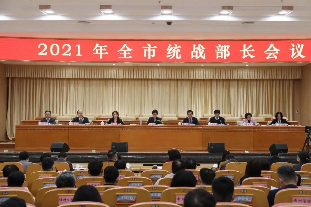 3月5日,梧州市統(tǒng)戰(zhàn)部長會議在梧州市聯(lián)合辦公大樓召開,學(xué)習(xí)貫徹全國、全區(qū)統(tǒng)戰(zhàn)部長會議精神,回顧總結(jié)2020年全市統(tǒng)戰(zhàn)工作,部署今年工作任務(wù)。市委常委、統(tǒng)戰(zhàn)部部長鐘碧珍出席會議并作工作部署。