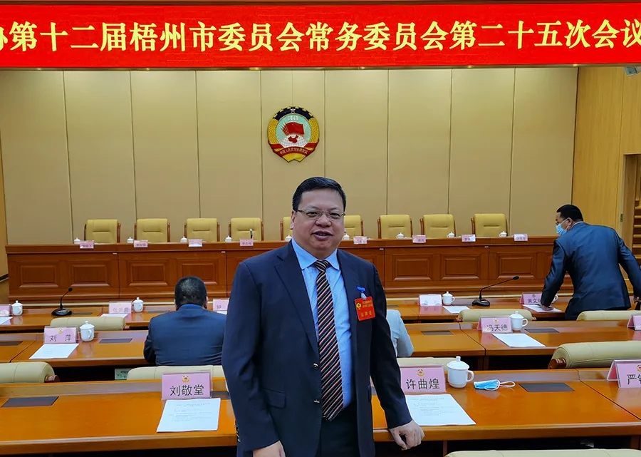 百裕集團(tuán)董事長許曲煌作為梧州市常務(wù)委員會參加此次會議。