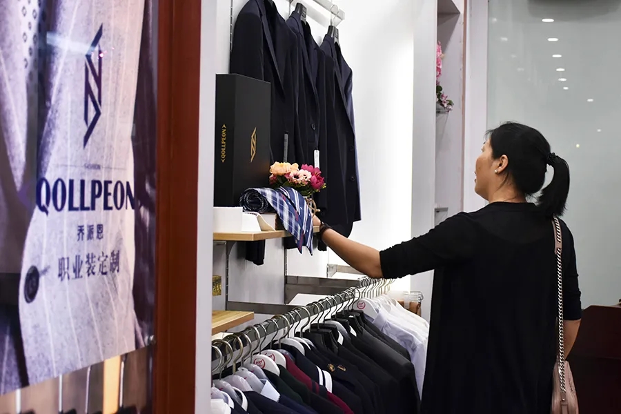 在產(chǎn)品展示廳,企業(yè)家們對(duì)我公司百裕校園時(shí)代校園服飾、喬派恩職業(yè)裝等品牌服飾表示濃厚興趣,并對(duì)產(chǎn)品的設(shè)計(jì)、工藝等方面表示贊賞。