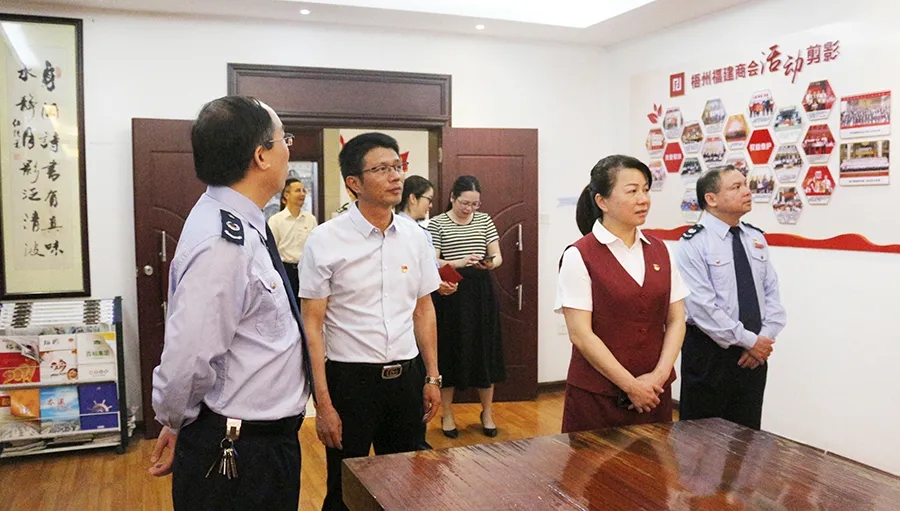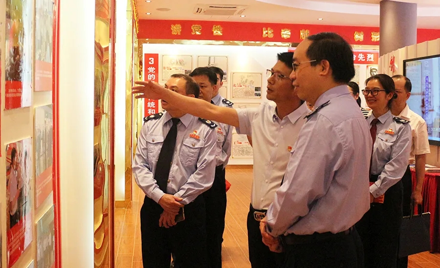 由稅務(wù)局黨組書(shū)記、局長(zhǎng)陳懿帶隊(duì)的交流團(tuán)在百裕黨支部書(shū)記曾晏來(lái)的帶領(lǐng)下,參觀(guān)黨建中心、黨群活動(dòng)室,了解我公司黨建工作。
