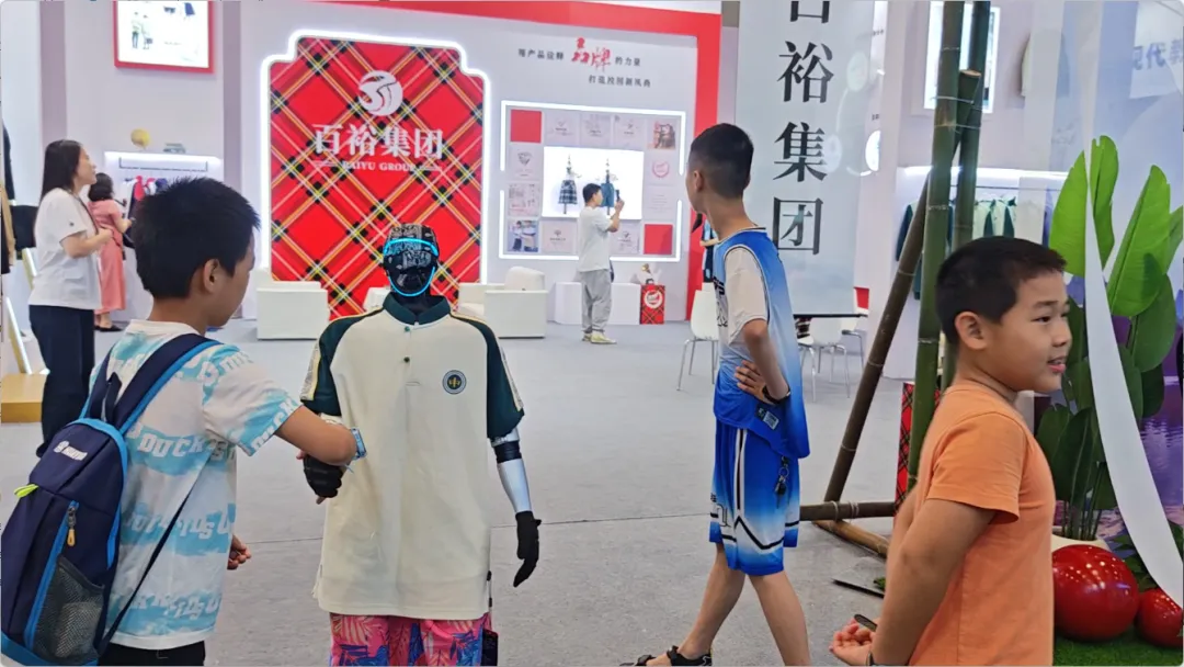 展會(huì)期間,還有智能機(jī)器人身著百裕集團(tuán)校服,在展館內(nèi)巡游并與觀眾互動(dòng)。這一創(chuàng)新場(chǎng)景,成為了全場(chǎng)矚目的焦點(diǎn)。當(dāng)傳統(tǒng)校服文化與前沿AI機(jī)器人技術(shù)相遇,碰撞出的不僅是視覺(jué)上的新奇體驗(yàn),更是對(duì)“科技賦能教育,裝備服務(wù)未來(lái)”理念的具象化表達(dá)。