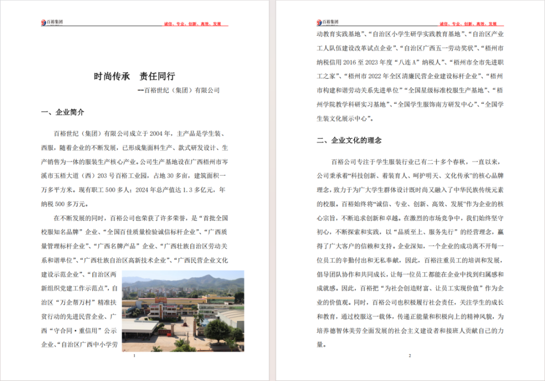 百裕集團(tuán)自2004年成立以來,始終秉持“誠信、專業(yè)、創(chuàng)新、高效、發(fā)展”的核心宗旨,堅(jiān)持“為社會(huì)創(chuàng)造財(cái)富、讓員工實(shí)現(xiàn)價(jià)值”的企業(yè)價(jià)值觀。多年來,集團(tuán)不僅在學(xué)生裝、西服等主營(yíng)業(yè)務(wù)領(lǐng)域持續(xù)深耕,更將履行社會(huì)責(zé)任融入企業(yè)戰(zhàn)略和日常運(yùn)營(yíng),實(shí)現(xiàn)了經(jīng)濟(jì)效益與社會(huì)效益的協(xié)同發(fā)展。