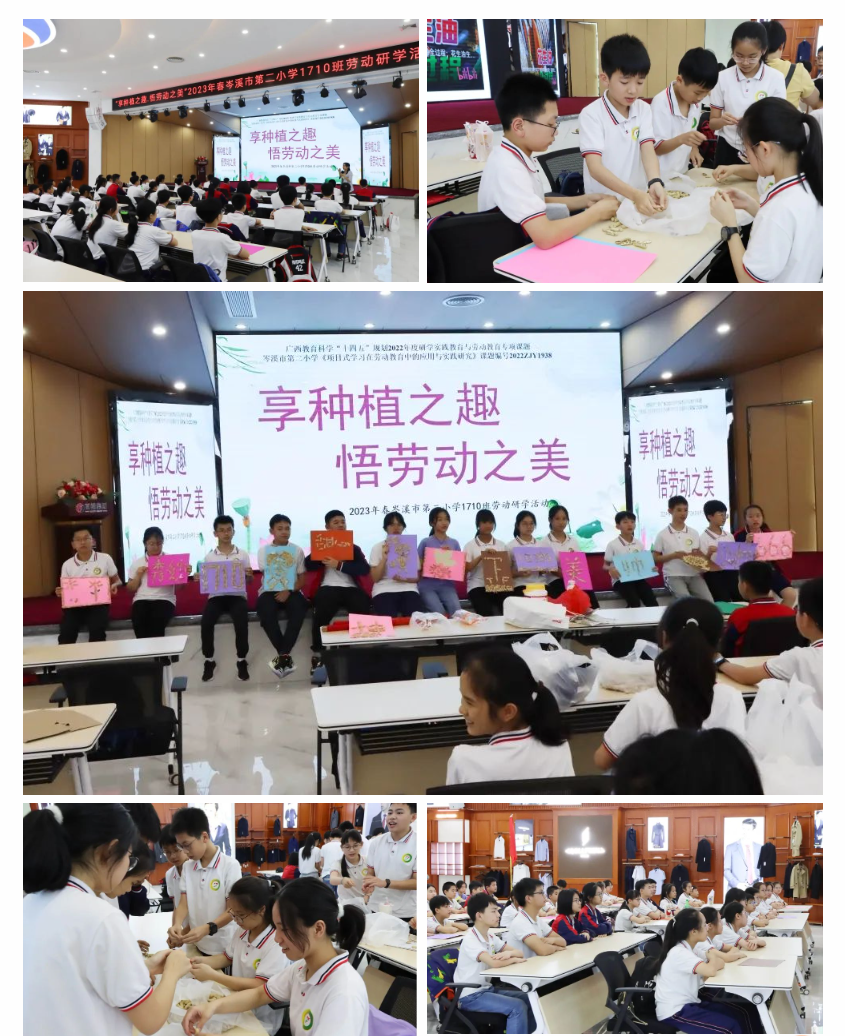 課堂開始,勞動教育實踐基地的工作人員組織學(xué)生們,在多功能教室進(jìn)行了農(nóng)作物與勞作知識的學(xué)習(xí)。學(xué)習(xí)農(nóng)作物的辨認(rèn)、如何挑選出合適的農(nóng)作物種子,還學(xué)習(xí)了如何種植花生的步驟,課堂上同學(xué)們聽得聚精會神,積極參與互動。在課堂最后,同學(xué)們用剝出來的花生殼做成了自己喜歡的拼圖,在積極響應(yīng)環(huán)保理念之余,又體驗到了動手的樂趣。