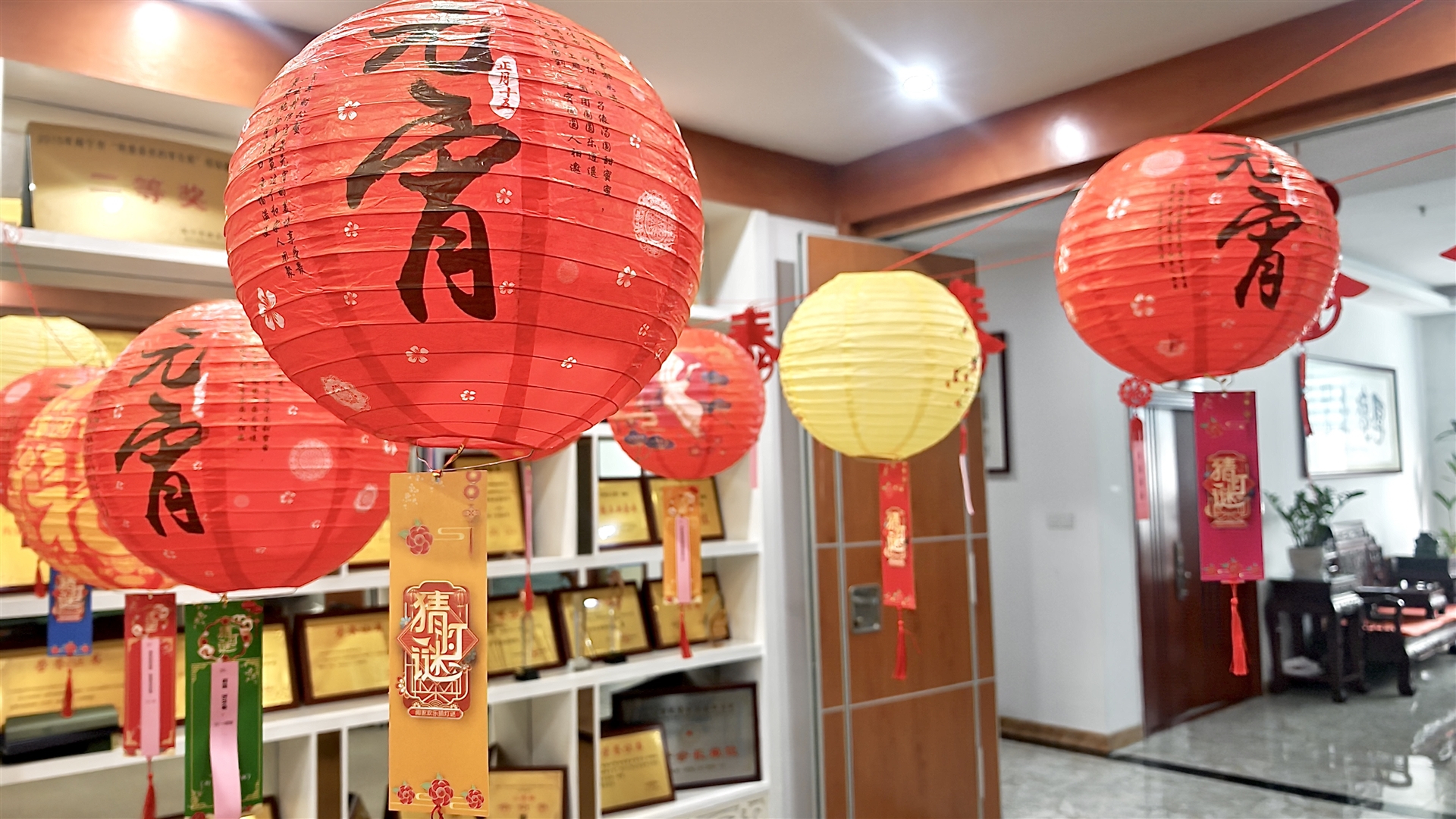 如果說(shuō)投壺是力量與技巧的較量,那猜燈謎就是智慧與知識(shí)的比拼?;顒?dòng)現(xiàn)場(chǎng),一盞盞燈籠下懸掛著五顏六色的燈謎紙條,宛如一道道神秘的謎題等待著大家去解開(kāi) 。
