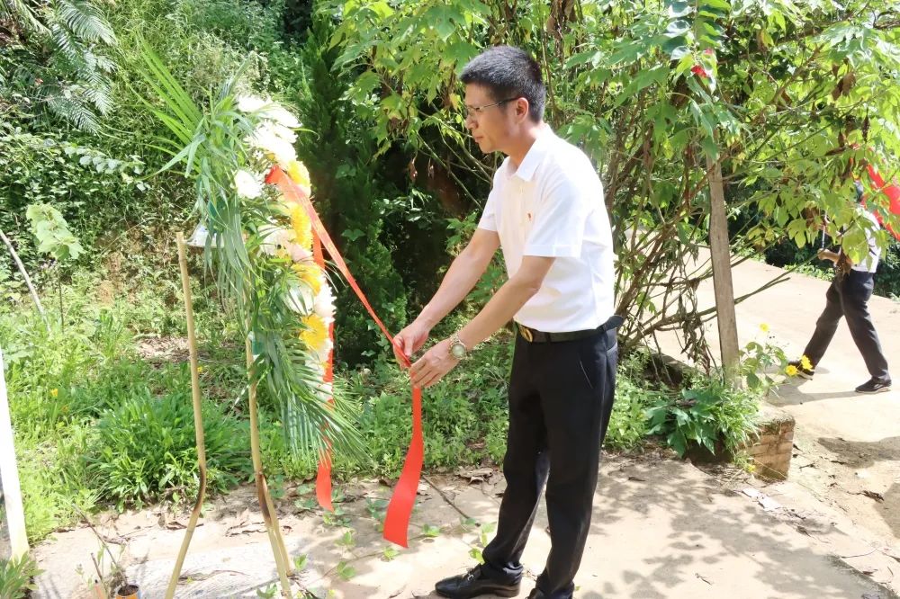 最后,黨員同志們來到了抗日英雄陳濟(jì)桓烈士的紀(jì)念碑前,深情緬懷革命先烈。大家在烈士塔前重溫入黨誓詞,牢記入黨初心,爭(zhēng)做優(yōu)秀共產(chǎn)黨員。全體黨員在黨支部書記曾晏來的帶領(lǐng)下,肅立三鞠躬,為烈士們獻(xiàn)花籃,以表達(dá)對(duì)烈士們的思念,緬懷革命烈士們的不朽功勛。