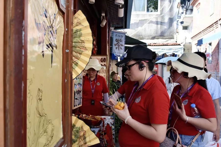在導(dǎo)游的引導(dǎo)下,小團隊穿梭在鼓浪嶼大大小小的巷子中,品味美食,欣賞風景,感受文化