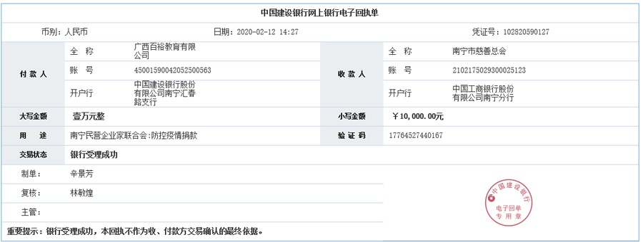 新型冠狀肺炎疫情抗疫過程中,醫(yī)護物資需缺,2月1日百裕集團全體積極響應,奉獻愛心。向公司員工發(fā)起捐贈倡議書,在集團許曲煌董事長的帶領下,各中心各分公司各部門的員工們踴躍捐款,慷慨解囊,支持國家抗疫,共計募捐現(xiàn)金97920元,將購買防護用品捐贈給廣西河池市、梧州市等地區(qū)防控抗疫使用。